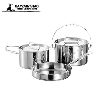 Captain Stag 日本鹿牌 不鏽鋼鍋三件組 M-5530 - 城市綠洲 (露營.野營.湯鍋.水壺.鍋具組.炊具) |